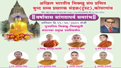 संपादक बिपीन गायकवाड महाराष्ट्र माझा न्युज कोपरगाव अखिल भारतीय भिक्खु संघ प्रणित बुध्द धम्म प्रसारक मंडळ ट्रस्ट कोपरगाव यांच्या वतीने…